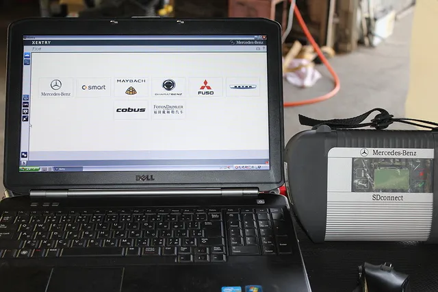 メルセデスベンツのあらゆる電子系統を診断できるコンピューターテスターです。多くの輸入車は専用テスターがないと、ブレーキ修理さえままなりません。